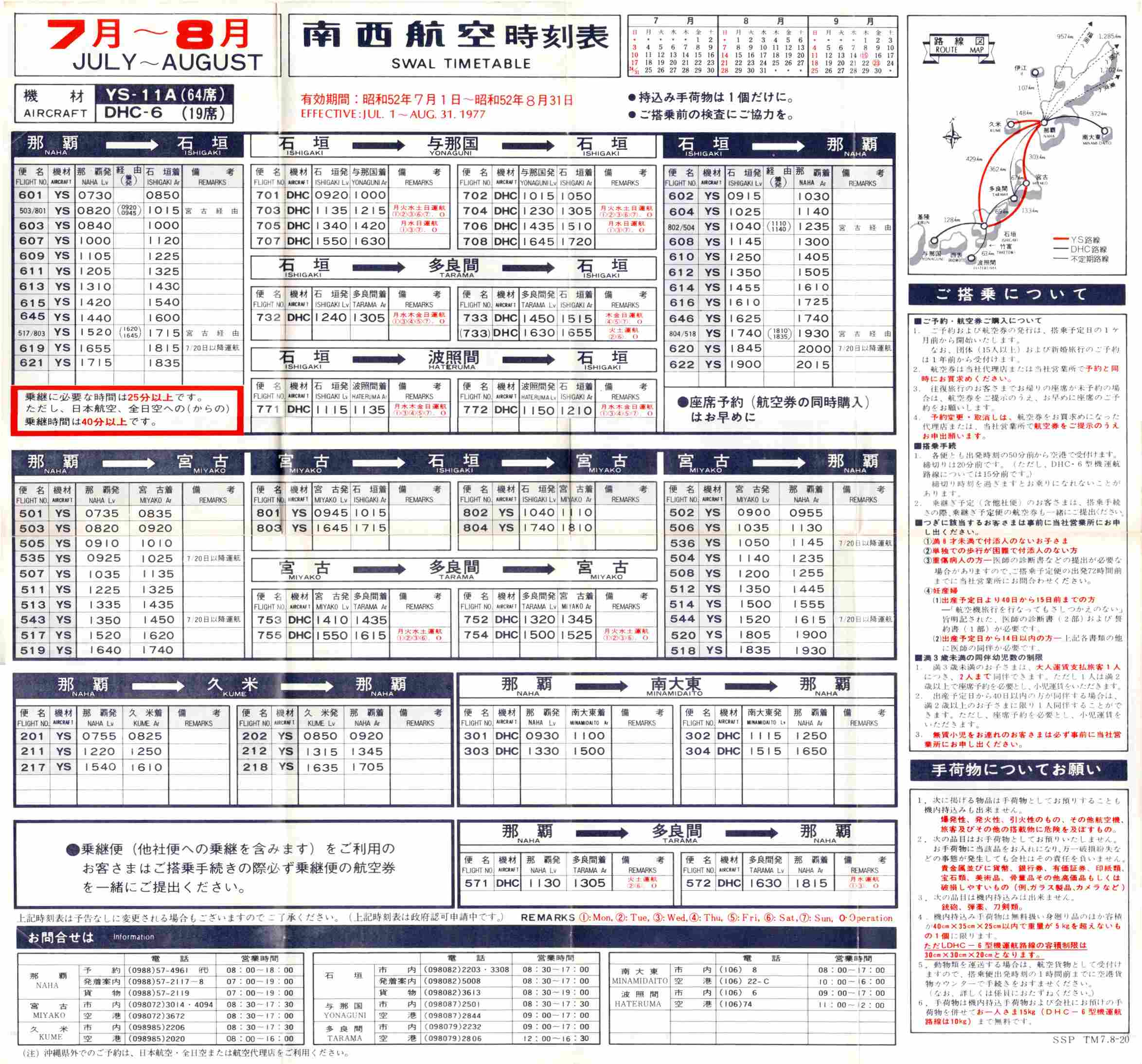 これは私が初めて沖縄に赴いた時のもの。この当時、粟国空港、北大東空港はまだオープンしていない(共に78年より就航)。75年の海洋博時に飛んでいた伊江線も描かれている。