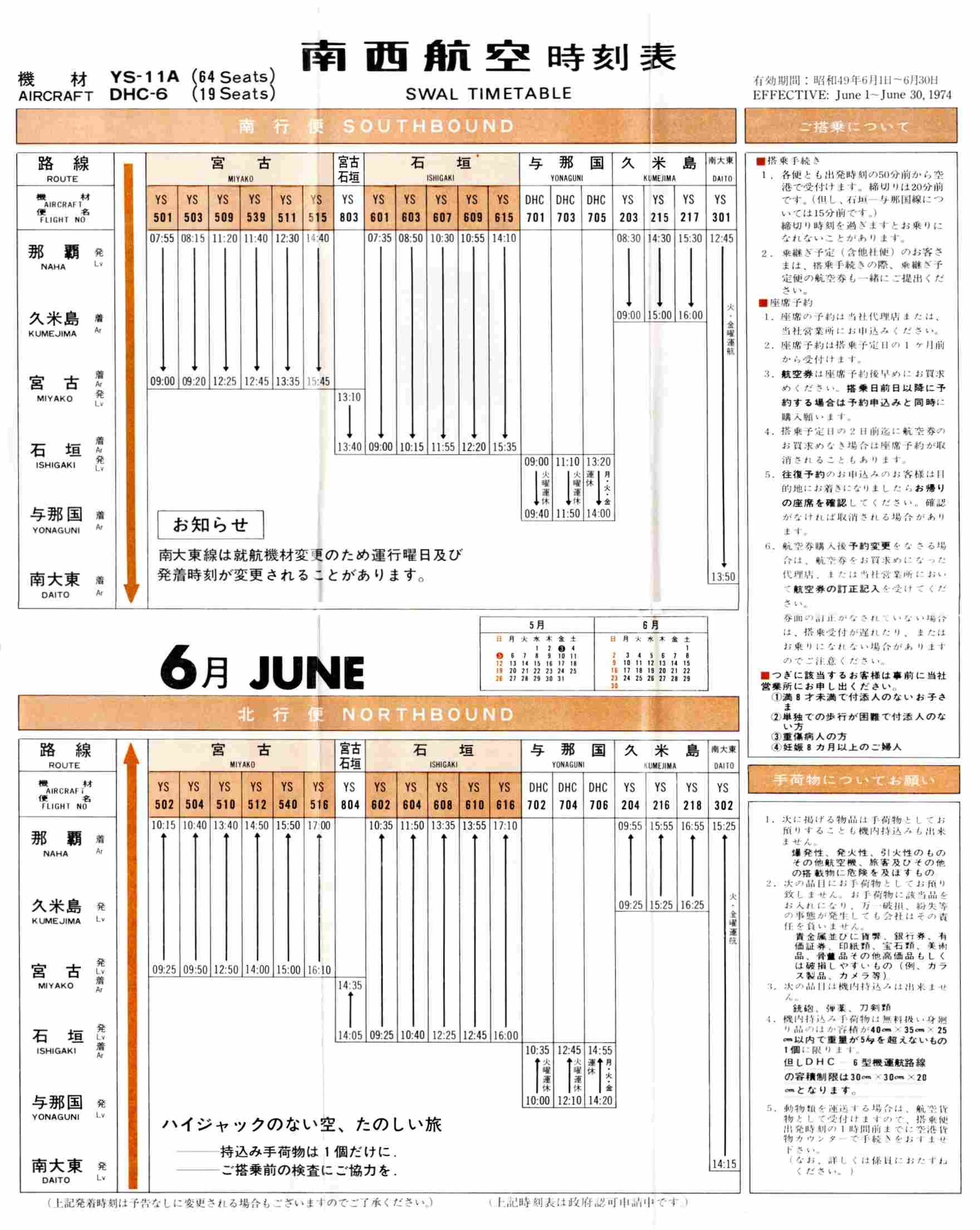 前年YS11に代わってDHC6を与那国線に投入。路線図には多良間があるが、就航は翌月から。8月からは南大東線もDHC6に変更される。